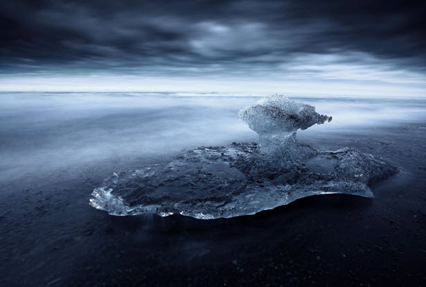 These beautiful and gloomy night, the icebergs are melting the ice in the largest lagoon in Iceland. Natural wonder consists of ice formations, which are constantly changing in accordance with the temperature. From June to September every year, the frozen glacier begins to melt. French photographer Alexander Deschamps visited three times this lagoon during the melt season.